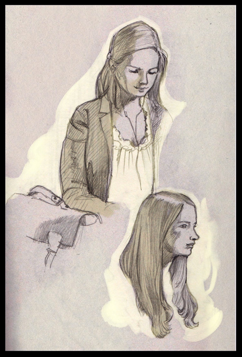 A girl I saw in the Mozarthaus in Vienna. She was that thin, dressed in black and white (more black than white) and with that light skin colour... She was already a drawing. That's how I can recall her, with her audio-guide in her hand ^_^