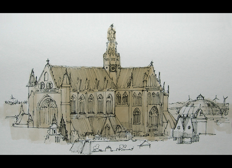 | De Grote Kerk from the V&D building (marker and PS) |