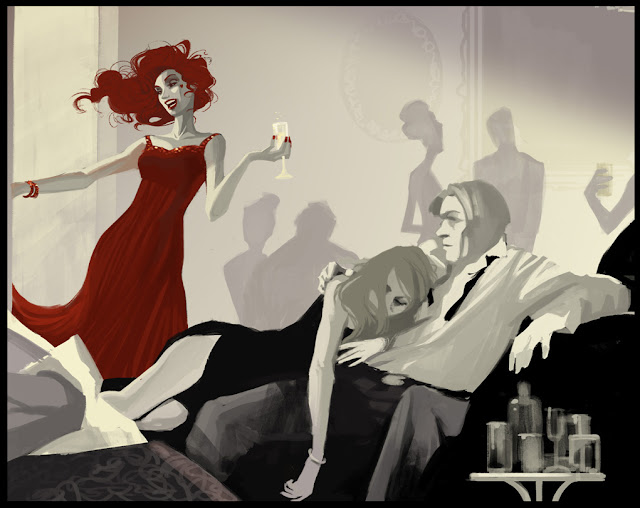 "The party had dragged on for days. The haggard faces of those less accustomed to such excesses looked on, as She swept into the room..."